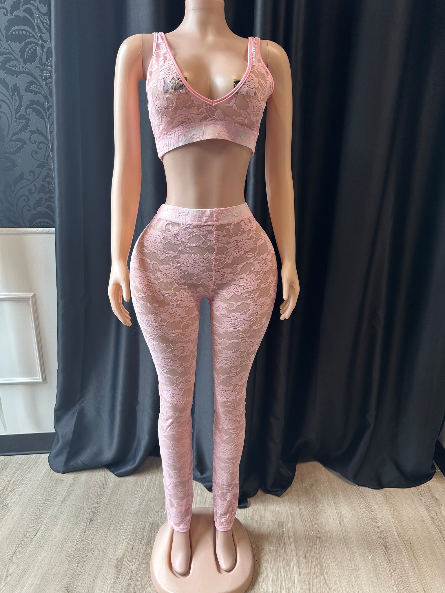 Set is soft lace and has some stretch